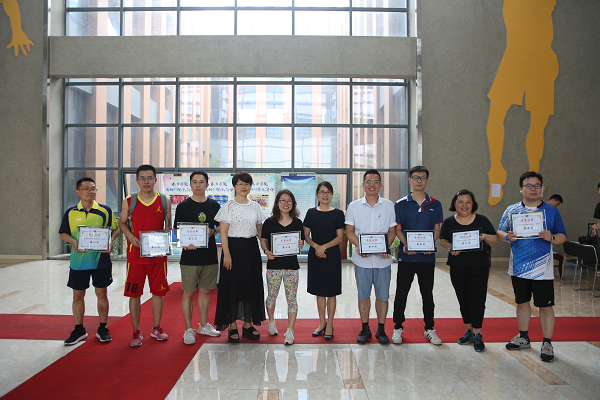 体育中心夺得季军。后勤饮服中心、工商管理分院、创业教育中心、图书馆、机关一代表队分获4至8名。(文/摄:通讯员 杨志慧 王海兵 学生记者 李哲男/学生记者 杜坤)