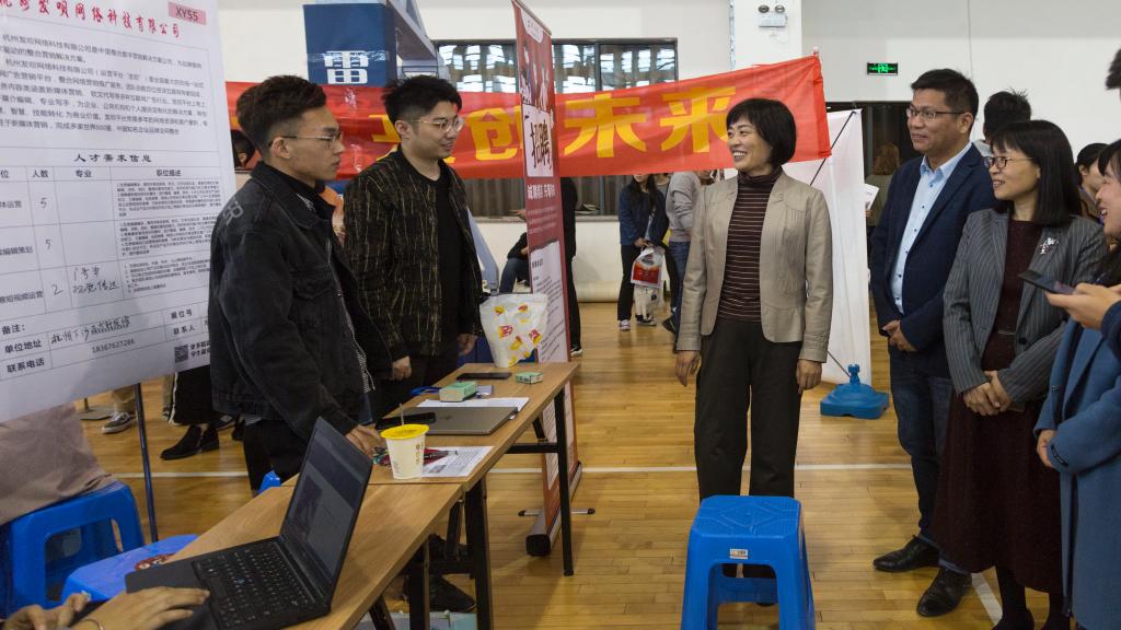 校党委委员、学院党委书记邵毅平,学院党委副书记林香娥,学院副院长金国锋等亲临招聘会现场指导就业工作。邵毅平书记在与企业沟通时,认真听取了用人单位的人才需求和对学校人才培养的意见建议。在指导毕业生就业时,她告诉学生要树立良好的择业观和就业观,努力提升就业竞争力,积极投身国家建设,争取早日建功立业。现场,邵毅平还亲切的看望了返校参加招聘会的校友们,对他们在工作岗位上取得成绩给与肯定,对他们能积极参与母校建设、反哺母校的行为给与了高度的赞赏。