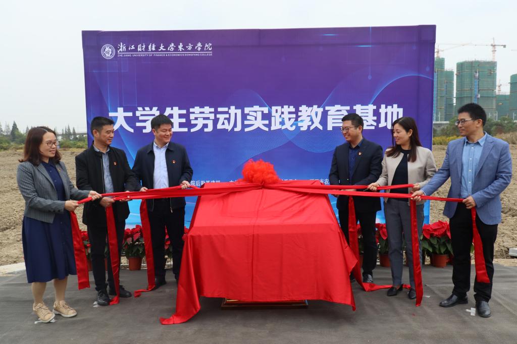 10月28日,学院与长安镇新民村、省农科院联合共建的“大学生劳动教育实践基地”揭牌仪式在学院北门外举行。海宁市长安镇(高新区)党委副书记俞吉俊、农业农村办公室主任钱向红、新民村党委书记陈宏杰等村镇领导,省农科院科研基地管理部主任茹水江、副主任陈小龙,学院党委书记申屠莉、党委副书记林香娥、副院长金国锋出席本次活动,各二级党总支书记、相关部门负责人和学生代表参加。
