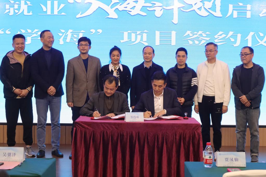 11月26日,我院在行政楼报告厅举行大学生就业“入海”计划启动仪式暨“学·海”项目签约仪式。学院党委书记申屠莉会见了海宁市学习型企业家协会会长贾凤仙一行。党委副书记吴翼泽,副院长蒋钰明,学院相关部门、各二级学院负责人及学生代表参加仪式。