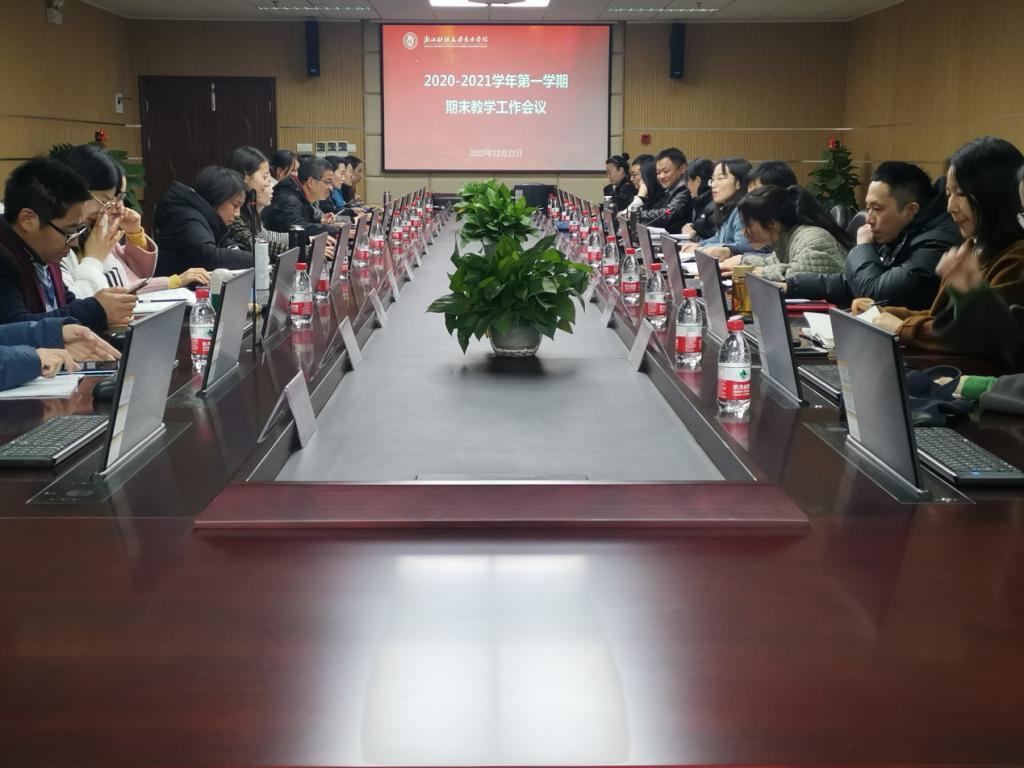 12月23日,我院2020-2021学年第一学期期末教学工作会议在行政楼A216会议室召开。各二级学院(部)主管教学领导、教学秘书,学院督导委代表,信息技术部、教务管理部负责人及相关工作人员参会。学院副院长马雪英在线进行工作部署。