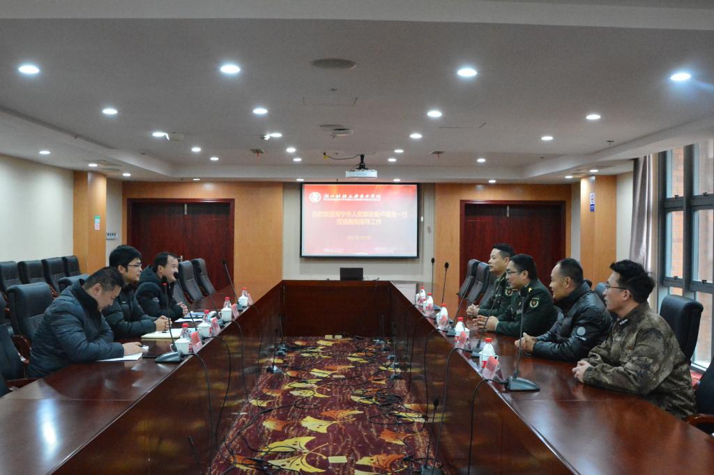 1月8日,海宁市人武部政委卢耀清、军事科长乔超一行来我院指导人武工作。学院党委副书记吴翼泽出席座谈会,人武部相关负责人参加会议。
