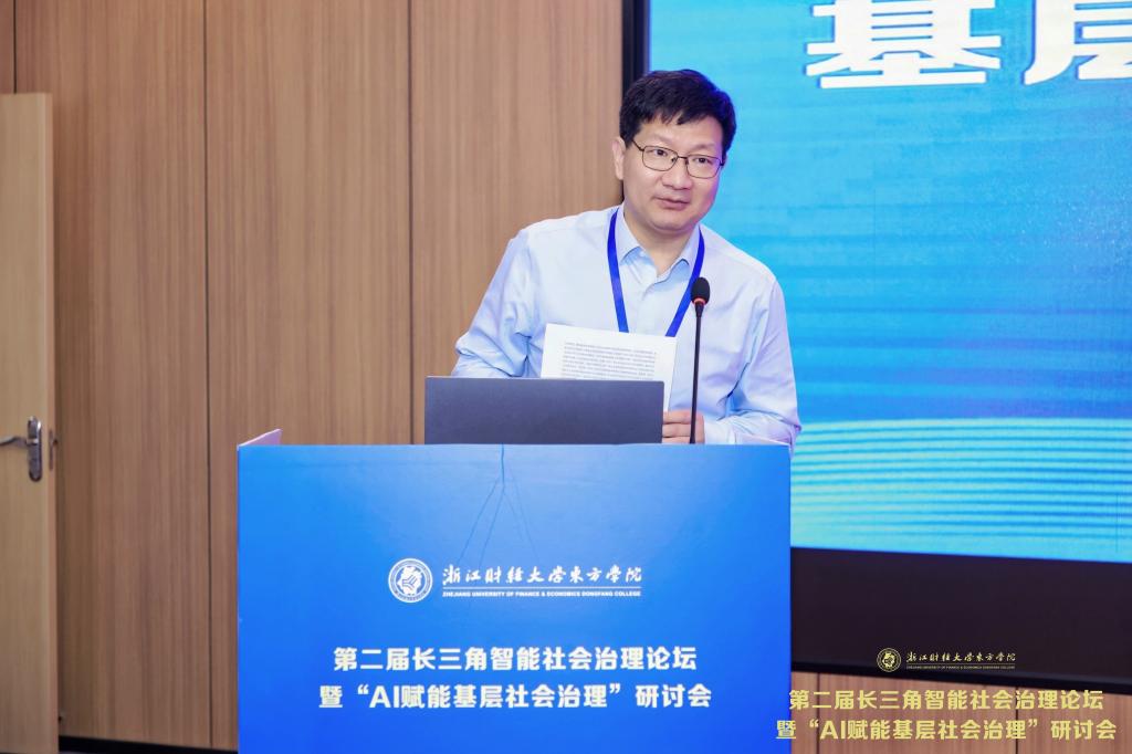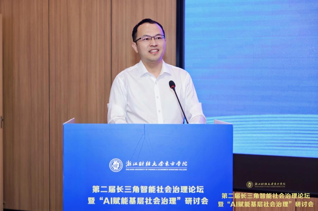 童志锋代表学院向与会嘉宾致以诚挚欢迎。他指出,面对基层治理中综合性、复杂性的现实问题,必须依靠跨学科的智慧协同攻关。为此,学院在母体“新财经战略”的指引和嘉兴、海宁等地方政府支持下,积极推进“四新”体系建设,实施“1234”发展战略,持续强化应用型人才培养。本次论坛汇聚学界与业界智慧,旨在打破学科壁垒,共同探讨智能社会治理中的理论、技术与伦理难题,探索AI在基层更高效、更普惠的应用路径。学院也将以此为契机深化产教融合,着力培养“懂技术、通治理”的复合型人才,为推动长三角乃至全国基层治理现代化贡献力量。