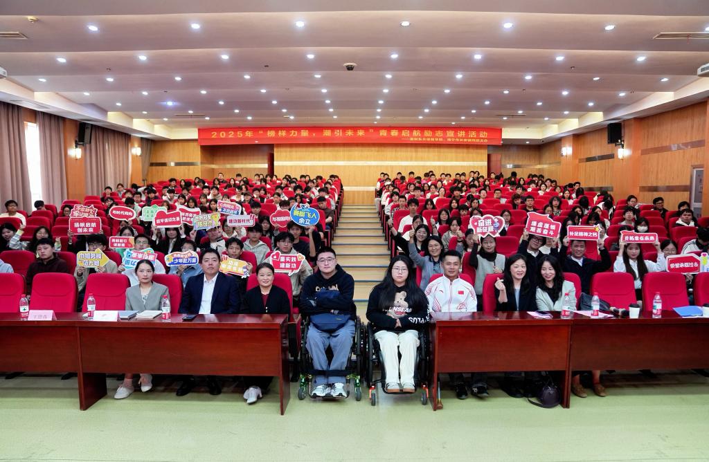 胡国庭在致辞中向同学们提出三点希望:一要学习榜样“千磨万击还坚劲”的顽强,在挫折中锚定目标、砥砺前行;二要传承他们“向阳而生”的豁达,将顺逆际遇皆化为成长的养料,永葆积极心态;三要践行他们“兼济天下”的情怀,将个人理想融入时代浪潮,以专业所学服务社会、贡献国家。