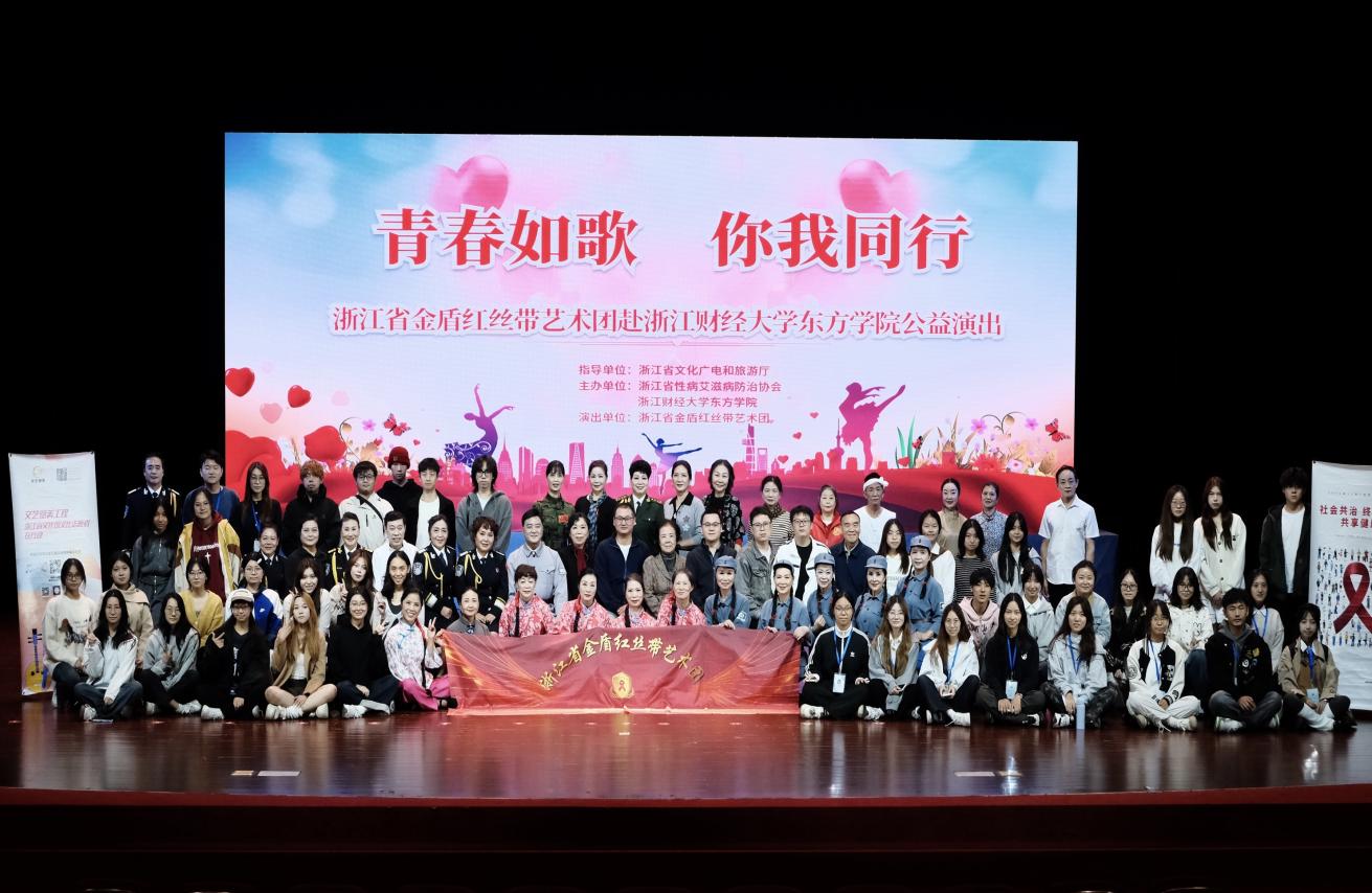 本次演出由浙江省文化广电和旅游厅指导,浙江省性病艾滋病防治协会、浙江省金盾红丝带艺术团与学院联合主办,团委承办。特邀而来的浙江省金盾红丝带艺术团,始终秉持“文艺为人民服务、为社会服务”的宗旨,以“抗艾禁毒反诈,助力健康中国”为使命,常年深入基层开展公益演出。