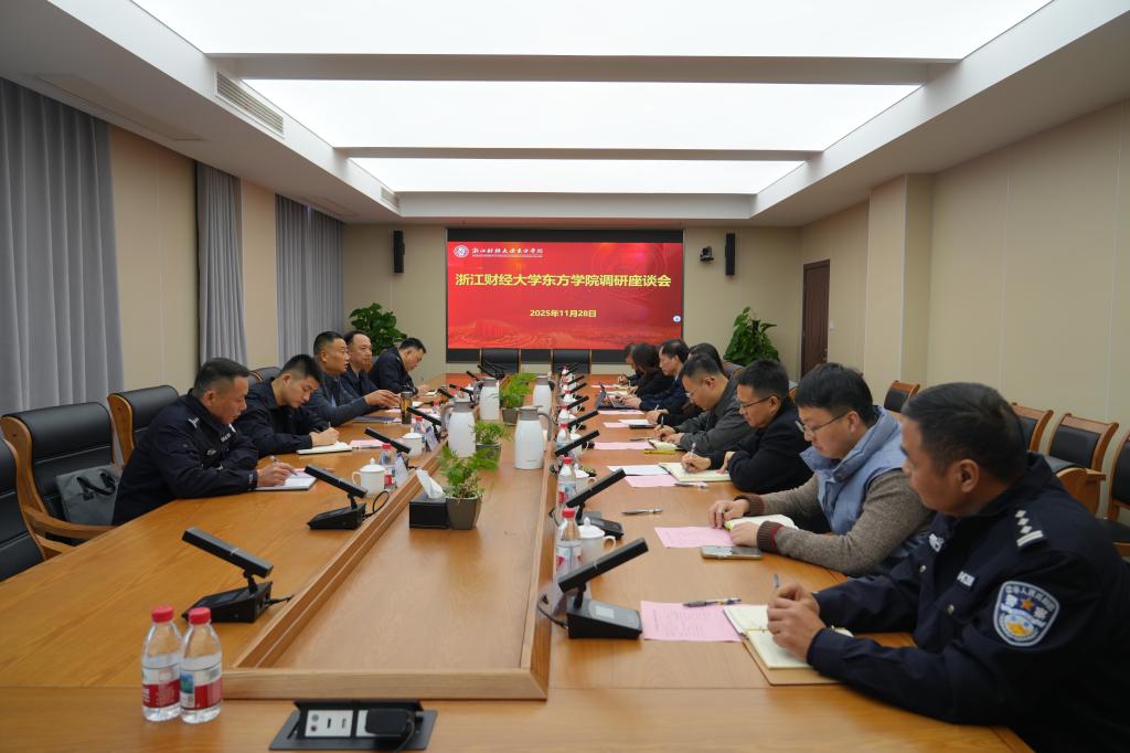 申屠莉对公安部门一直以来对学院安全稳定工作的支持表示感谢,并介绍了学院基本情况和校地协同推进平安校园建设方面的做法。她强调,学院党委始终高度重视校园安全工作,校园安全管理是一项系统工程,需要校警双方进一步加强协作,探索校园安全治理新模式,构建校地联动安全治理新格局。