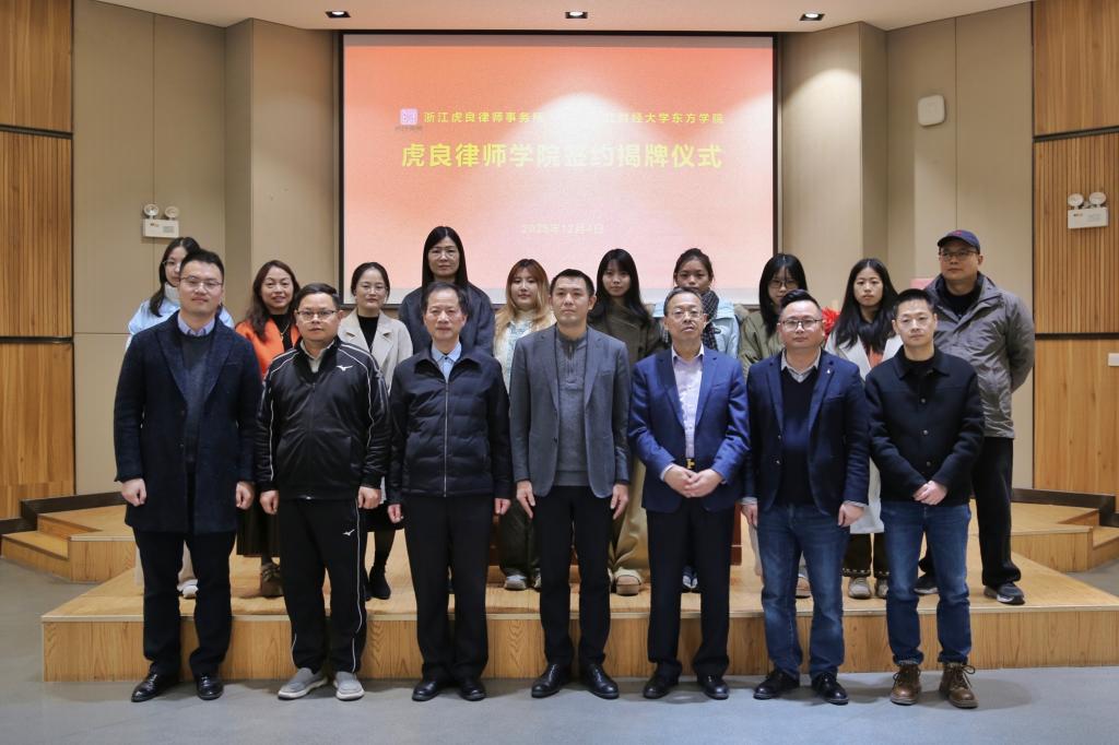12月4日,学院与浙江虎良律师事务所共建“虎良律师学院”的签约揭牌仪式在学院5J-101举行。学院副院长张伟飚,虎良律师事务所主任邱国平,创始人金虎良,副主任陈春源,主任助理、核心合伙人张建飞,主任助理、合伙人何晓琦,合伙人宋婷婷等律所负责人,学院科技部、法社学院相关负责人,共同出席仪式。