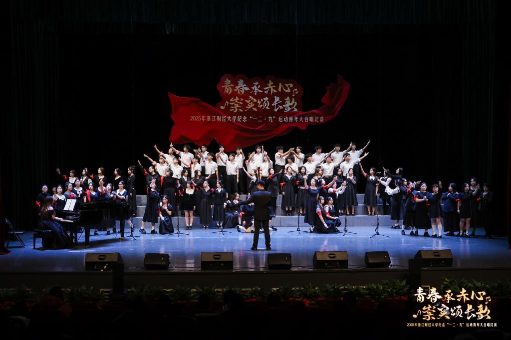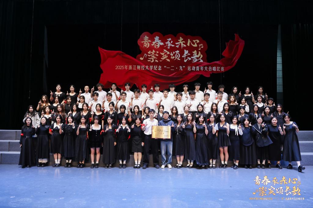 12月9日,浙江财经大学“青春承赤心崇实颂长歌”纪念“一二·九”运动青年大合唱比赛在下沙校区举行。学院“一个声音”合唱团凭借作品《愿你再见我时》,在众多优秀队伍中脱颖而出,荣获大赛一等奖、优秀组织奖,展现了东方学子昂扬的精神风貌与卓越的艺术素养。
