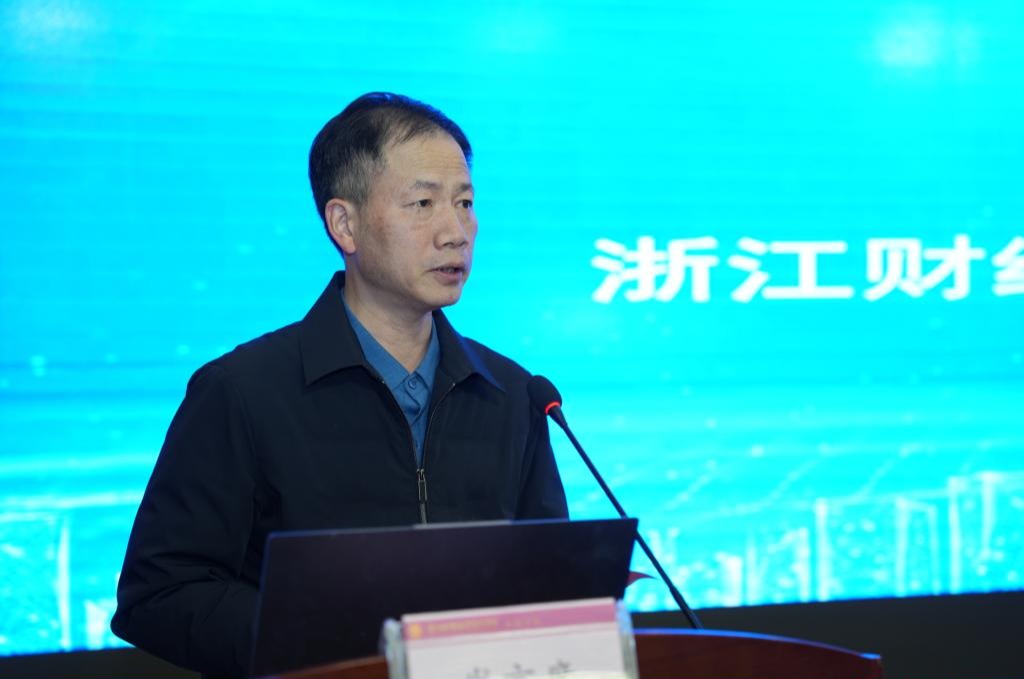 嘉兴市会计学会会长钮利根在致辞中回顾了系列活动从企业实践到高校理论的演进,强调此次活动是向“共创未来智慧”的战略深化。