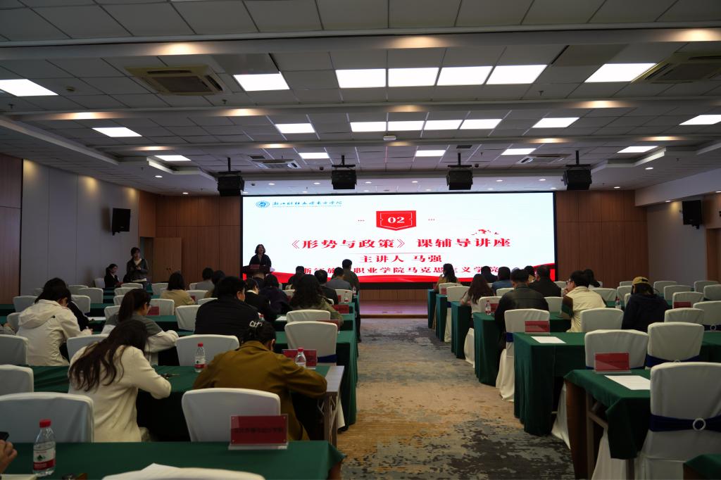 4月7日,学院在行政楼B301举行2025-2026学年第二学期《形势与政策》课集体备课研讨会。本次集体备课特邀2025年浙江省高校《形势与政策》课教学展示比赛特等奖获得者、浙江旅游职业学院马克思主义学院专任教师马强作专题辅导分享。学院纪委书记方咏,党委副书记胡国庭、汪风易,学术副院长姚莉,组宣部、马克思主义学院相关负责人,《形势与政策》课全体任课教师参会。
