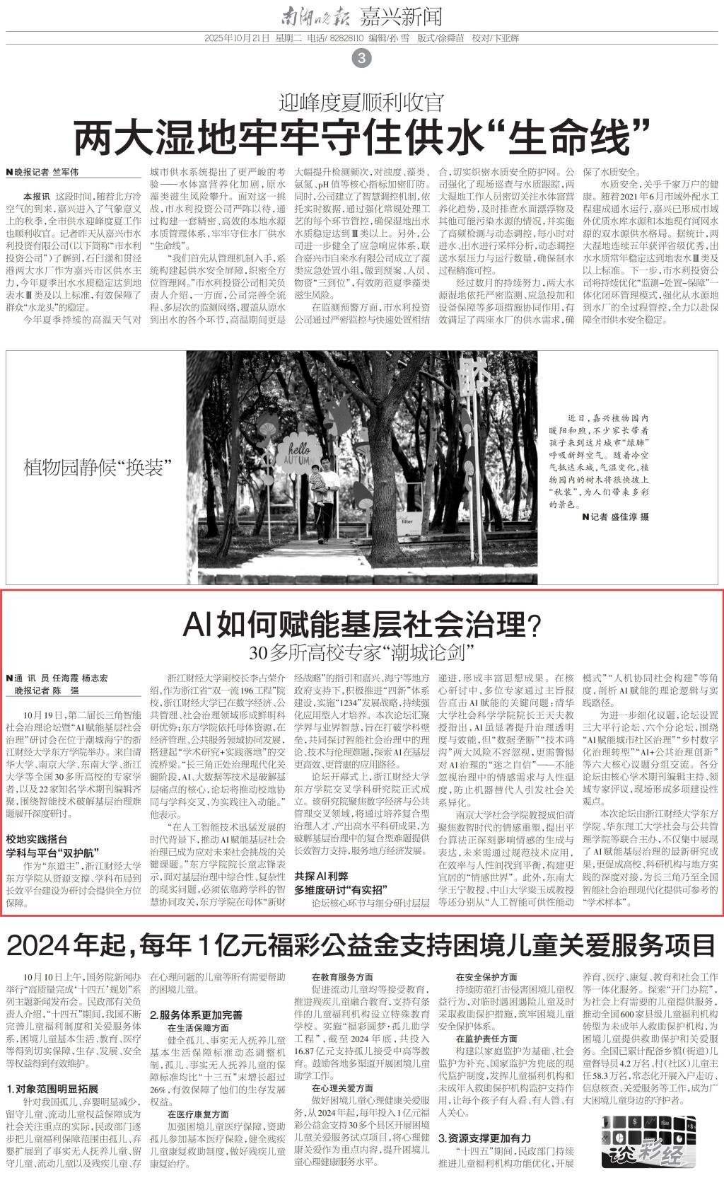 10月19日,第二届长三角智能社会治理论坛暨“AI赋能基层社会治理”研讨会在位于潮城海宁的浙江财经大学东方学院举办。来自清华大学、南京大学、东南大学、浙江大学等全国30多所高校的专家学者,以及22家知名学术期刊编辑齐聚,围绕智能技术破解基层治理难题展开深度研讨。