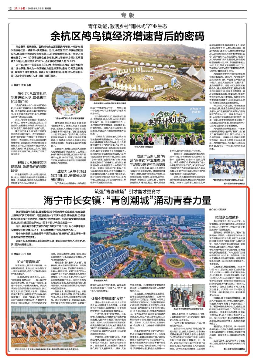 海宁市长安镇,这座坐拥千年运河文脉的“钱塘新城”,正上演着一场青春与城市的双向奔赴。