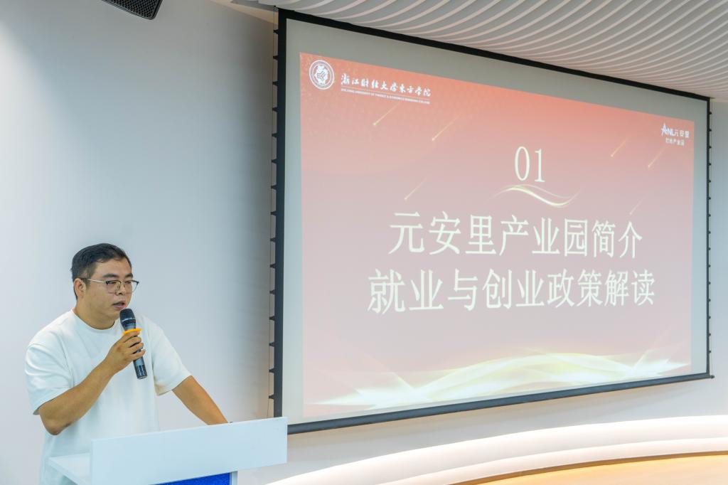 元安里时尚产业园招商运营负责人林祥威详细介绍了产业园的定位与优势,解读了专为微专业学员定制的创业就业扶持政策。他表示,元安里不仅是物理空间上的产业聚集地,更是集创意设计、品牌孵化与市场营销于一体的全产业链生态圈。