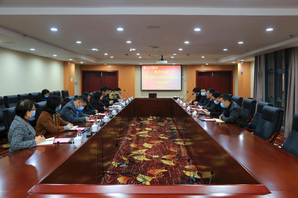 1月23日,浙江财经大学党委委员、副校长徐晓东一行来我院调研指导工作。校党委委员、学院党委书记申屠莉,副院长金国锋及学院相关部门负责人参加调研。