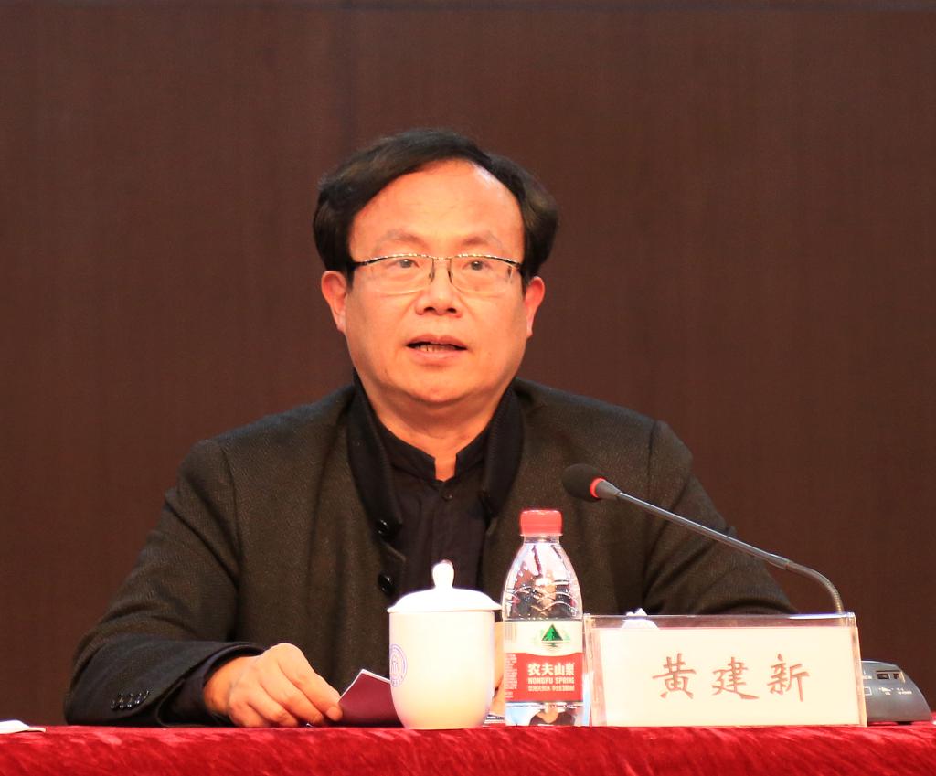 校党委副书记、党史学习教育领导小组副组长黄建新作学校《党史学习教育实施方案》和《庆祝建党百年活动》说明。