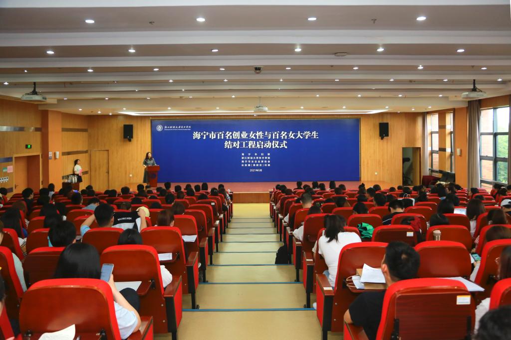 5月11日,学院举行海宁市百名创业女性与百名女大学生结对工程启动仪式。海宁市妇联主席张烨、副主席王岚、组宣部部长褚兰,长安镇妇联主席薛雁、海宁市女企业家协会会长马月娟以及近百名海宁市女企业协会会员代表受邀参加活动。学院党委书记申屠莉,浙江财经大学工会副主席陈思佳,学院党委副书记林香娥,党委副书记吴翼泽,副院长蒋钰明出席活动。
