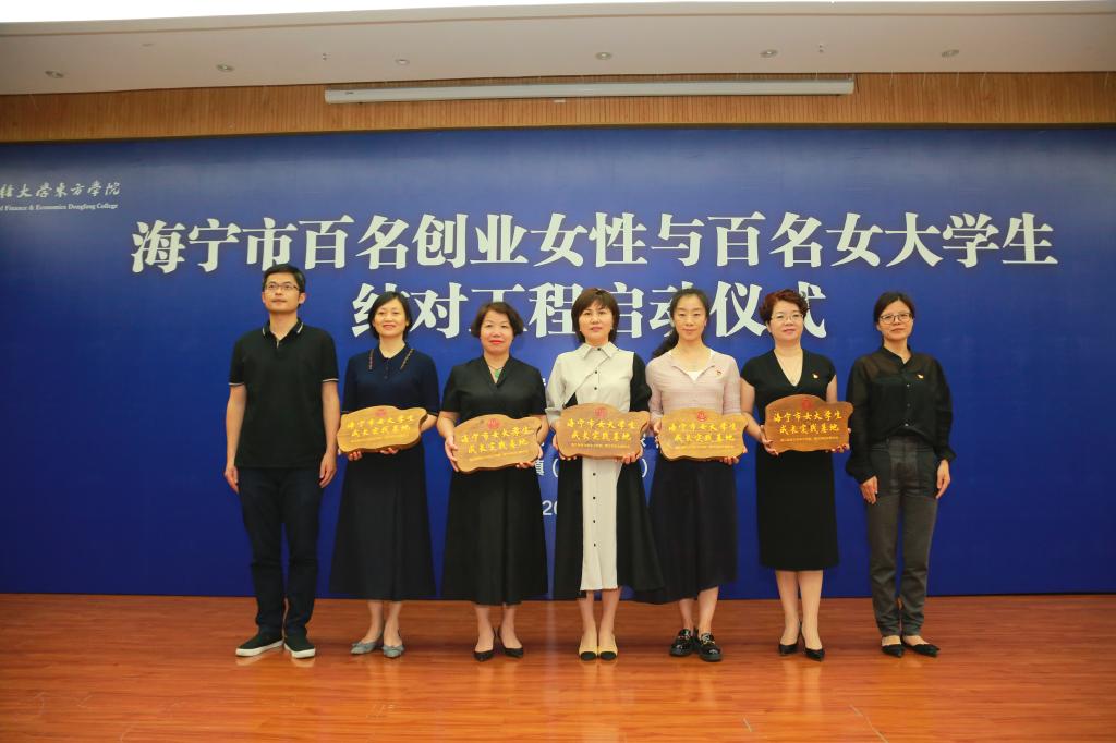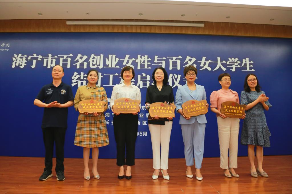 林香娥、蒋钰明、吴翼泽、王岚为海宁市女大学生成长实践基地代表授牌。