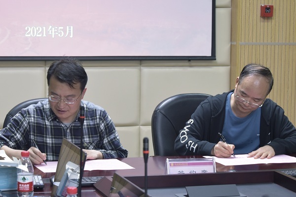 蒋钰明分别与学院各部门、各单位签订了《2021年度反诈工作责任书》。(文:孙红云/摄:吴林国)