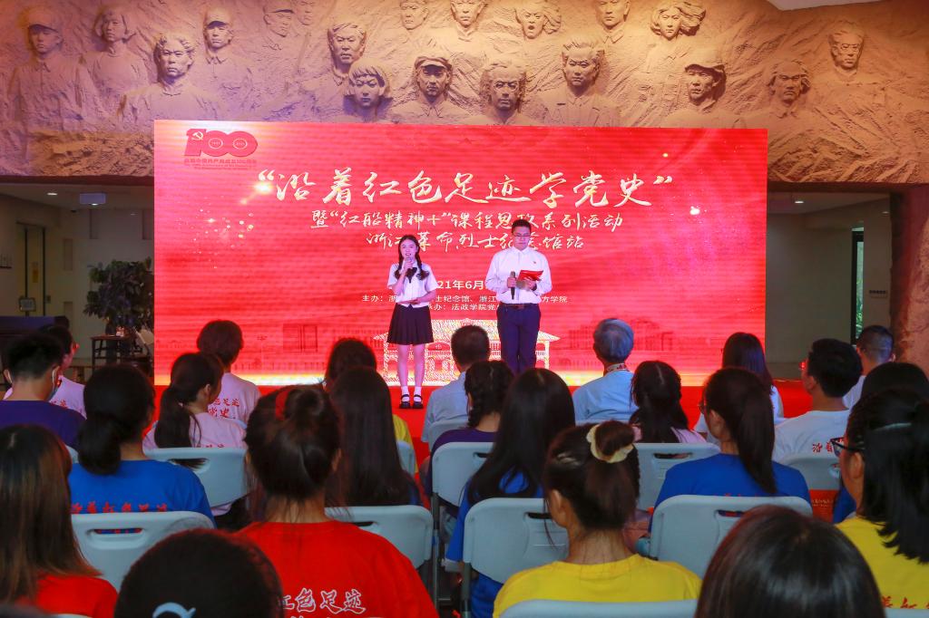 为庆祝中国共产党成立100周年,引导学院全体师生党员“学党史、悟思想、办实事、开新局”,坚定理想信念,传承红色基因,激发爱国爱党热情,进一步推动课程思政教育教学工作不断创新,学院开展了“沿着红色足迹学党史”暨“红船精神+”课程思政系列活动。6月27日,学院党委书记申屠莉、副书记林香娥及法政学院师生代表60余人来到浙江革命烈士纪念馆,开展“沿着红色足迹学党史”暨“红船精神+”课程思政系列活动第十站活动,为此次系列活动画上圆满句号。