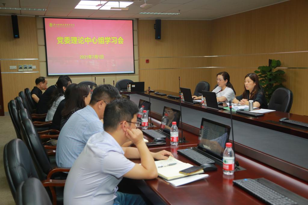 7月1日,学院党委理论中心组召开学习会,学习贯彻习近平在庆祝中国共产党成立100周年大会上的讲话精神。学院党委书记申屠莉主持学习会并讲话,中心组全体成员参加学习,党院办、组织宣传部相关负责人列席会议。