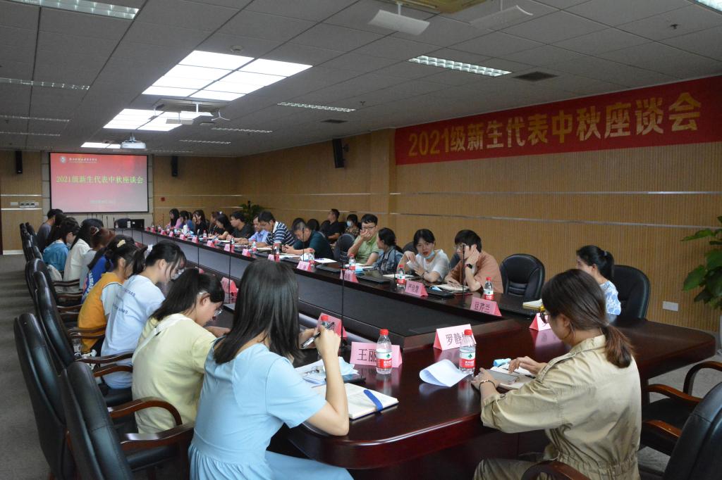9月18日,学院举办2021级新生代表中秋座谈会。学院党委副书记吴翼泽,教务管理部、学生工作部、团委、后勤基建部负责人,2021级辅导员及新生代表等欢聚一堂,共度佳节。
