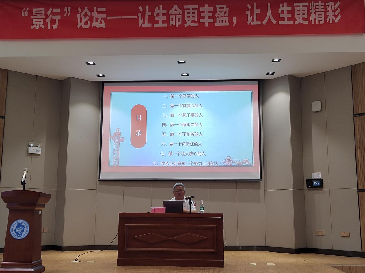 沈丁华围绕“以百姓心为心,以群众事为事”的理念和“吃苦不叫苦,艰苦更刻苦”的精神,分别从“做一个好学的人,做一个有爱心的人,做一个想干事的人,做一个敢担当的人,做一个不怕苦的人,做一个负责任的人,做一个让人放心的人,时光不会辜负一个努力上进的人”八个方面分享了自己的人生感悟。他通过总结自身多年从事教育和群众工作的经验,采取理论讲授和经验传授相结合的方法,将实际工作中遇到的各种困难及问题展示的淋漓尽致,并勉励大家“听党的话,感党的恩,永远跟党走”,炼成“七个品质”,最终成为“不负时光,努力上进”的人。