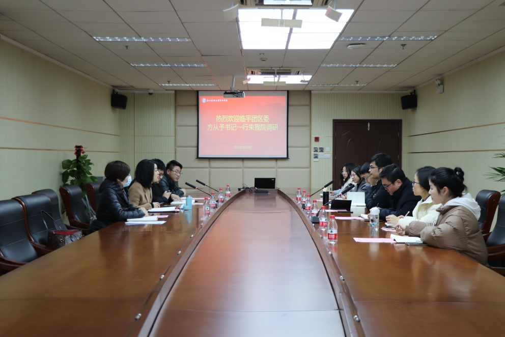 2月22日,临平团区委书记方从予一行来学院调研亚运会志愿者工作,学院党委副书记吴翼泽,学院相关职能部门负责人参加会议。
