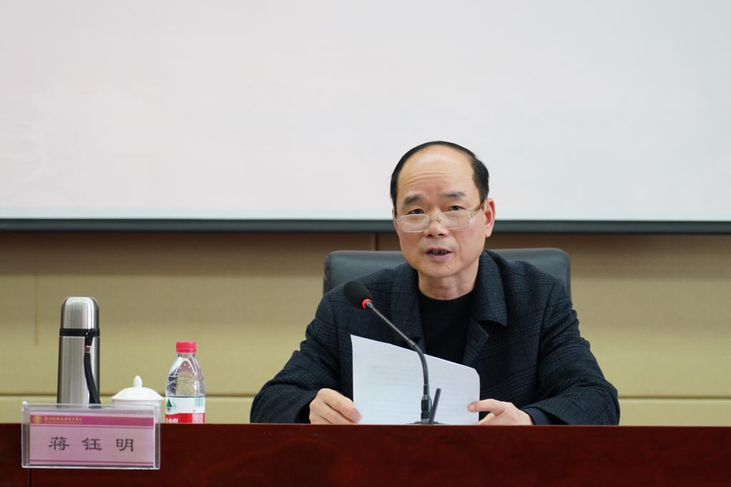 蒋钰明回顾总结了2021年度安全稳定工作,对学院在过去一年里发生的治安案件以及各项实施有效的新举措进行了详细汇报。他指出,2022年将迎来党的二十大、杭州亚运会,是学院“十四五”发展规划深入实施之年,要精准发力、狠抓落实,全面加强校园安全稳定工作,确保校园安全和谐稳定。他对新一年的安全工作提了五点要求:一是安全稳定意识要再提高,把学院全体干部、师生员工的思想和行动统一到习近平总书记总体国家安全观上来;二是安全稳定责任要再压实,切实落实全员安全责任,推动落实各部门、各单位“属地管理”责任;三是安全稳定隐患要再排查,突出隐患风险排查,强化隐患风险治理,确保安全稳定风险隐患动态清零;四是安全稳定措施要再抓实,强化阵地意识,突出工作重点,加强联防联控,抓好应急处置,全面提升师生安全意识和安全管理干部素质能力;五是数字转型要再推进,积极探索“智慧安防”“智慧思政”建设,推进人工智能、物联网等新技术的应用,构建数字化校园安全稳定防范管理体系。