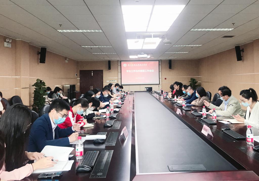 4月19日,学院在行政楼A216会议室召开学生工作与共青团工作会议。学院党委副书记吴翼泽主持会议并讲话。相关职能部门负责人,各二级学院分管学生工作书记、学办主任、团委书记,学生工作部及团委全体人员参会。