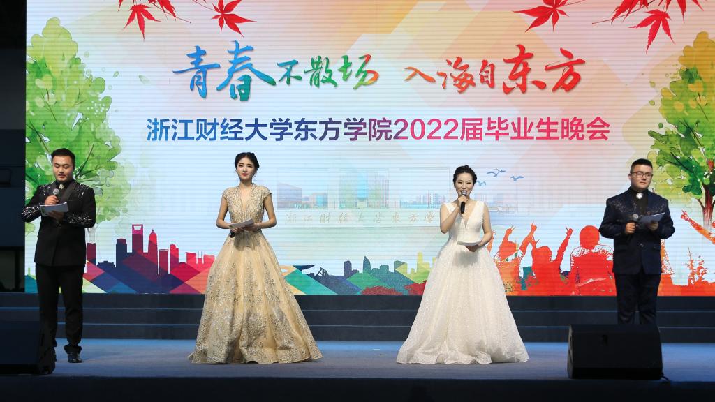 6月9日晚,浙江财经大学东方学院“青春不散场,入海自东方”2022届毕业晚会在操场举行。全体学院领导,各二级学院、职能部门负责人,教职工代表,全体专兼职辅导员及2022届毕业生一同观看晚会。