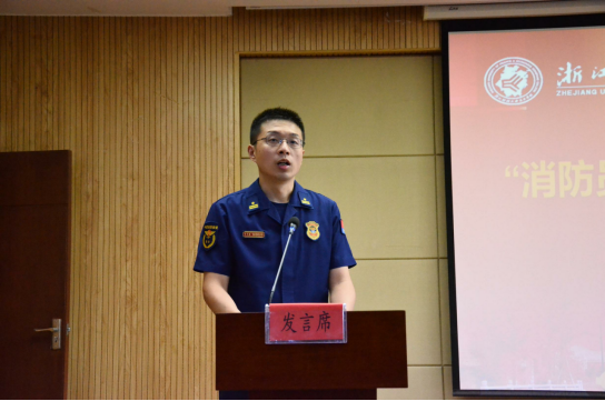 海宁市消防救援大队负责人、指战员代表,党院办、组织宣传部、学生工作部、安全保卫部、后勤基建部负责人,学生代表参加此次活动。