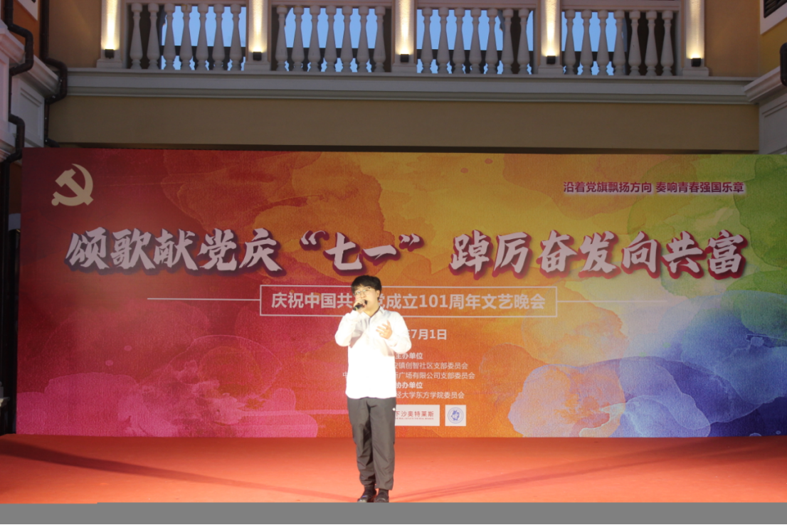为献礼“七一”建党节,用实际行动迎接党的二十大胜利召开。近日,学院大学生艺术团在长安镇创智社区奥特莱斯广场开展文艺下乡暑期社会实践活动,学院党委副书记吴翼泽、院团委负责人,长安镇团委、创智社区等相关负责人出席活动。