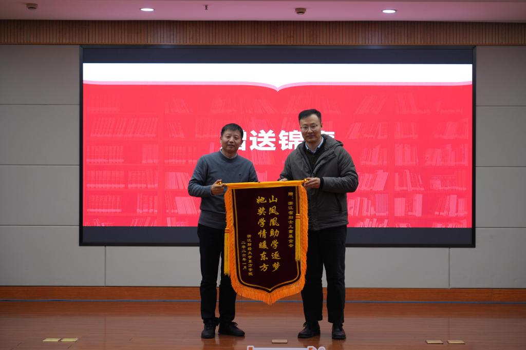 1月23日,“山凤凰女生助学计划”之“她奖学”奖学金颁发仪式在学术中心第一报告厅举行。浙江省妇女儿童基金会副理事长、秘书长冯志刚、副秘书长江盼盼、项目部主任童瑶,学院院长童志锋、党委副书记汪风易,学工部、各二级学院相关负责人,辅导员及获奖学生代表共同参与仪式。