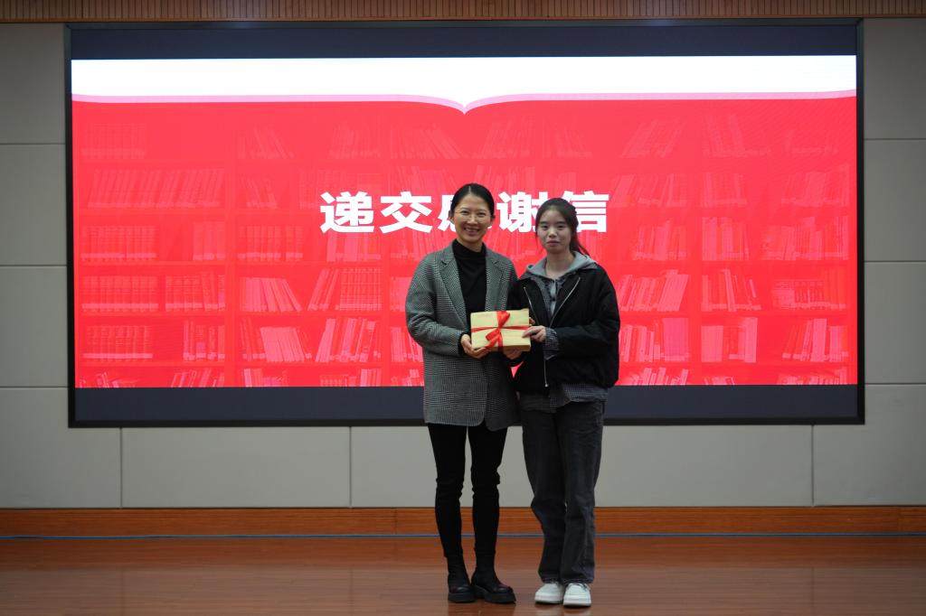 受助学生代表向省妇女儿童基金会递交感谢信。