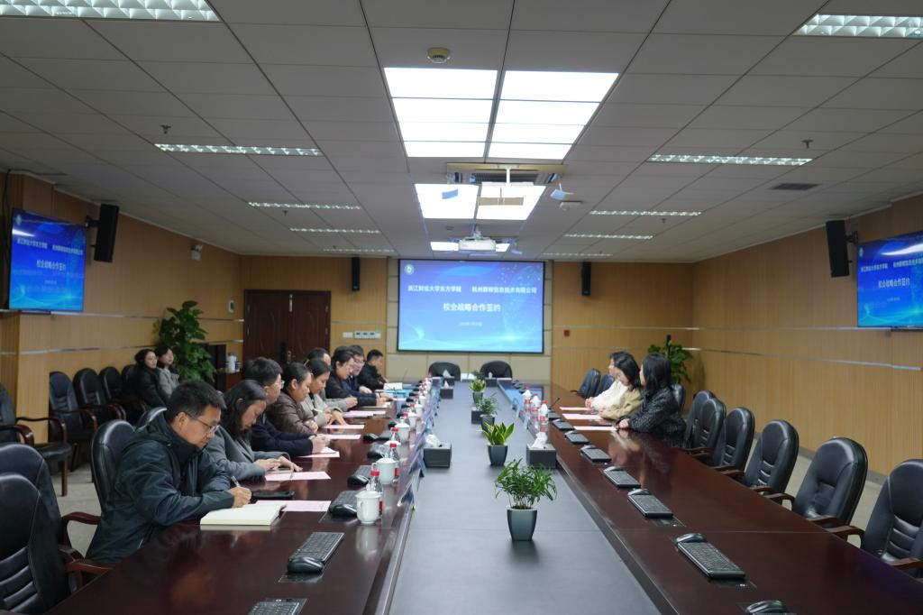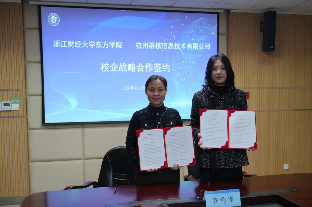 1月29日,学院与杭州群核信息技术有限公司举行校企合作签约仪式。学院党委书记童玉玲、院长童志锋、纪委书记方咏、副院长杨丽霞,群核科技教育事业部总监茅晚菱、教育事业部区域经理苏李依和王志祥出席签约仪式。签约仪式由学院副院长张书铭主持。