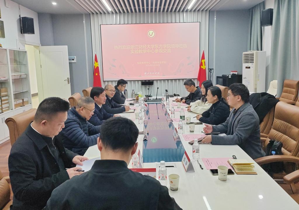湖北经济学院校党委常委许传华对调研组的到访表示热烈欢迎,并详细介绍了湖北经济学院的办学定位、学科建设特色及实践教学整体推进情况,重点分享了其在人才培养模式改革、产教融合教学平台打造等方面的创新实践与显著成果。调研期间,调研组实地走访了数智创业实验室、校企共建“AI+数智财经”实验教学中心、未来学习中心等实验室,双方就实验室教学资源统筹调配、跨专业课程体系改革、产教融合协同育人等重点工作展开深入交流,积极交流优化路径、分享实践经验。