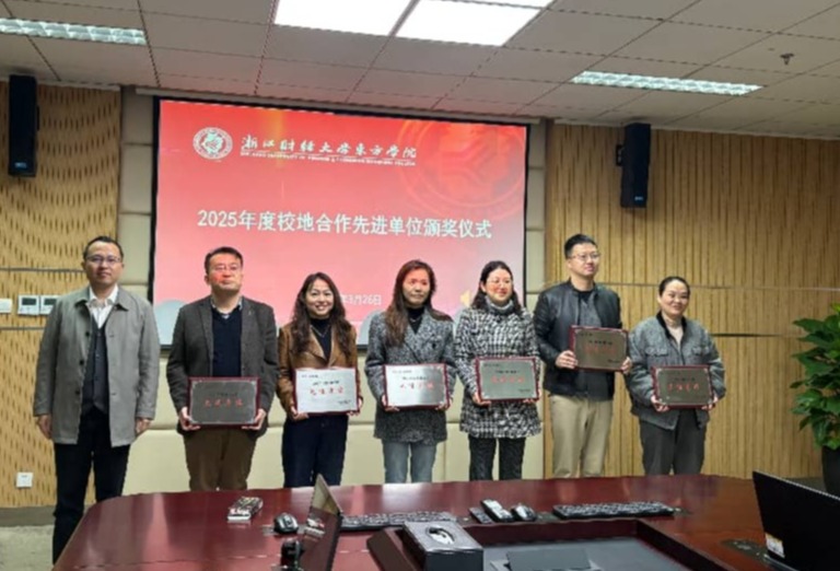 社会合作部负责人作“十四五”社会合作工作汇报,并介绍了学院“十五五” 专项规划指标和2026年校地合作工作要点,与会人员围绕会议主题开展交流讨论。会议还举行了2025年度校地合作先进单位的颁奖仪式,童院长为各获奖单位颁发荣誉奖牌。