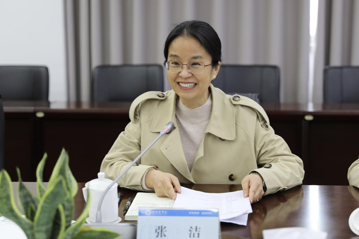 张洁对调研组一行的到访表示诚挚欢迎,介绍了上海商学院的发展沿革,以及学校长期秉持的“应用型、创新型、国际化”的办学理念,重点分享了学校近年来在数字贸易、酒店文旅、国际商务三大重点学科方向的专业建设成效、人才培养模式创新成果,以及产教融合领域的典型实践经验。她指出,期待双方以此交流为契机,建立常态化互访沟通机制,持续深化互学互鉴,聚焦应用型办学过程中的共性痛点与实际需求开展深度合作,共同提升服务区域经济社会高质量发展的能力水平。