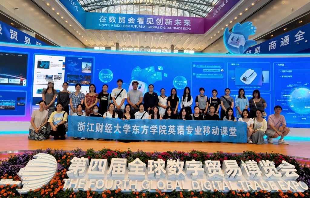 该直播间是数贸会现场唯一的直播购物展示区,不仅为非洲特色产品开辟了新销售渠道,更成为学院数字贸易人才培养的“实践窗口”。活动同期,外国语学院还将30余名跨境电商方向学生的课堂“搬”至数贸会现场,开展沉浸式移动教学。师生深入各展区,以英语为沟通媒介,围绕数字贸易前沿动态、跨境电商实务等,与参展企业代表交流。