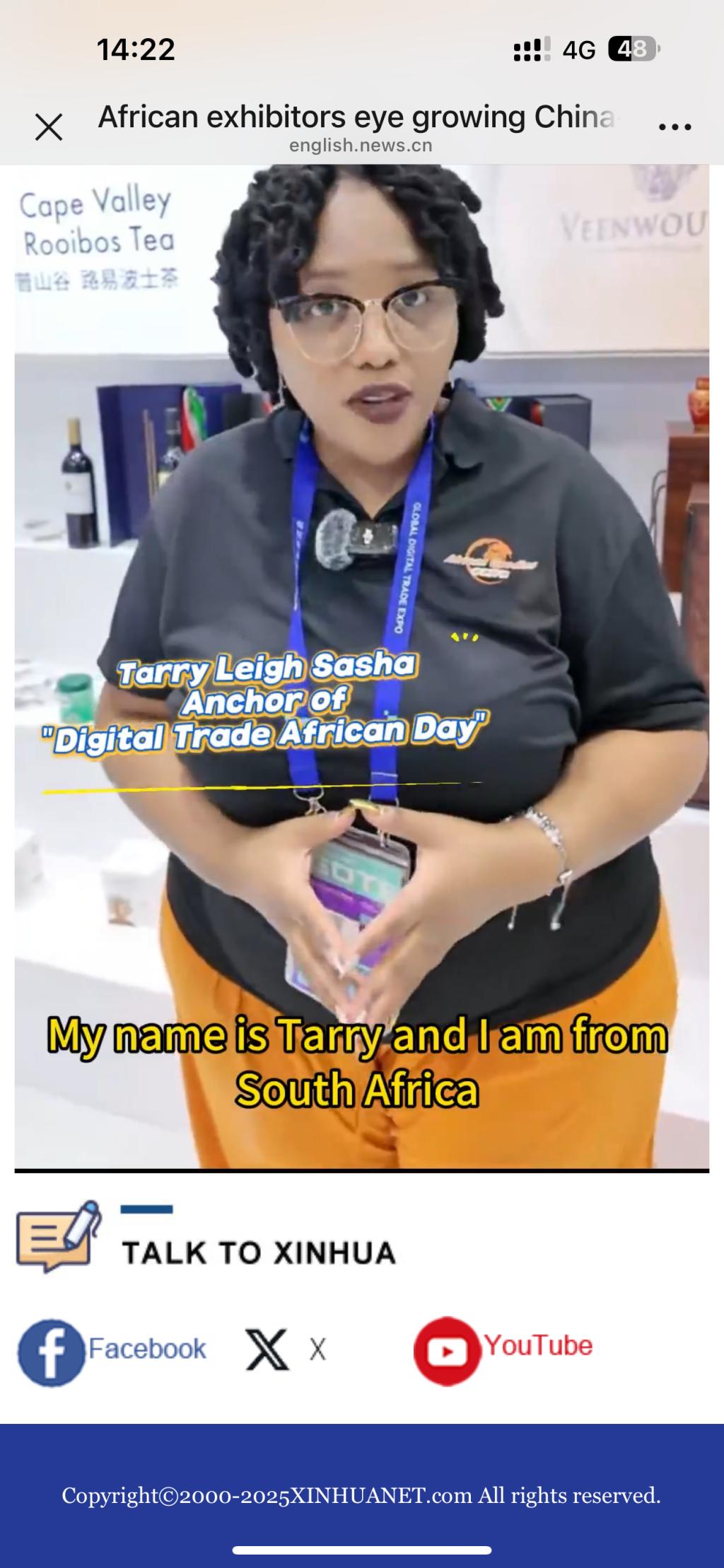 在新华网的采访中,外教Tarryn分享了她参与此次直播活动的体验与感悟。她表示,能够在中国这样一个大型的国际性博览会上,向全球观众介绍非洲的特色产品,是一次非常难忘的经历。她希望通过自己的努力,能够让更多中国消费者了解和喜爱非洲产品,同时也让世界看到数字贸易为中非经贸合作带来的新机遇。